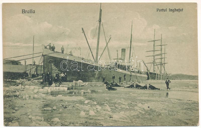 Braila, Portul inghetat / frozen port in winter, steamship (EK) https://www.darabanth.com/hu/472-Gyorsarveres/472.0/Kepeslapok/Romania~1500101/Braila-Portul-inghetat-frozen-port-in-winter-steamship-EK~II3182083