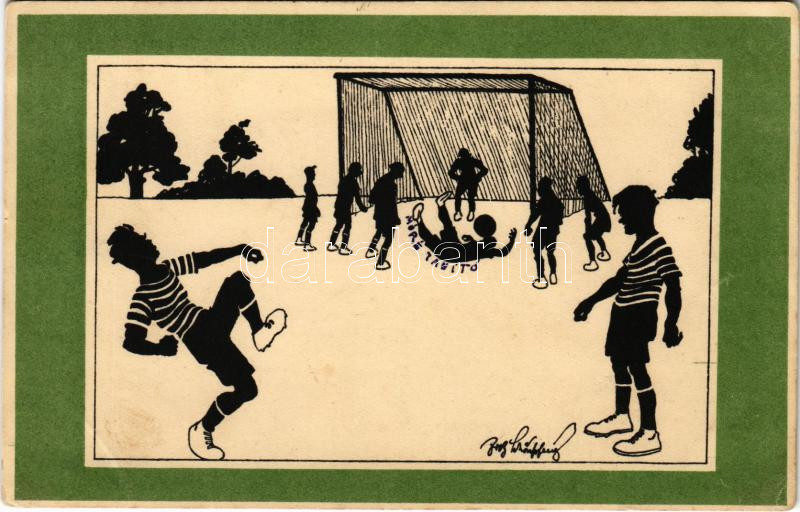 Football match, humour, silhouette art postcard. B.K.W.I. 260-1. s: Fr... https://www.darabanth.com/hu/472-Gyorsarveres/472.0/Kepeslapok/Sport~1500081/Football-match-humour-silhouette-art-postcard-BKWI-260-1-s-Fritz-Schonpflug-EK~II3178530