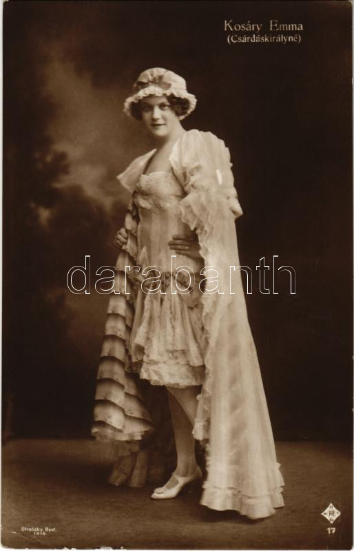 1917 Kosáry Emma (Csárdáskirályné) Strelisky felvétele (EK) https://www.darabanth.com/hu/472-Gyorsarveres/472.0/Kepeslapok/Szinesz~1500085/1917-Kosary-Emma-Csardaskiralyne-Strelisky-felvetele-EK~II3197778