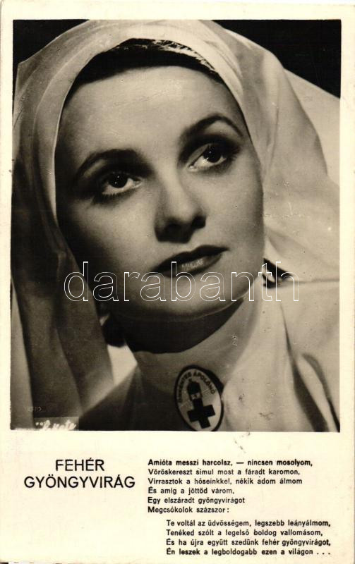 Rácz Vali, 'Fehér gyöngyvirág', Dalosképek No. 24. https://www.darabanth.com/hu/472-Gyorsarveres/472.0/Kepeslapok/Szinesz~1500085/Racz-Vali-Feher-gyongyvirag-Daloskepek-No-24~II1332222