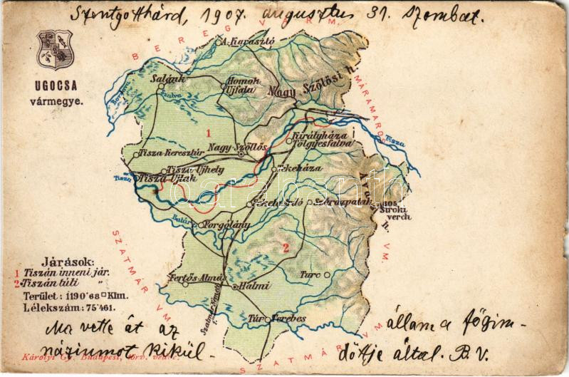 1907 Ugocsa vármegye térképe. Kiadja Károlyi Gy. / Map of Ugocea count... https://www.darabanth.com/hu/472-Gyorsarveres/472.0/Kepeslapok/Terkep~1500087/1907-Ugocsa-varmegye-terkepe-Kiadja-Karolyi-Gy-Map-of-Ugocea-county-szakadasok-tears~II3199510