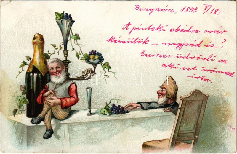 1899 (Vorläufer)Törpék pezsgővel és szőlővel / Dwarves with champagne ... https://www.darabanth.com/hu/472-Gyorsarveres/472.0/Kepeslapok/Torpe~1500088/1899-VorlauferTorpek-pezsgovel-es-szolovel-Dwarves-with-champagne-and-grapes-litho-EB~II3195035