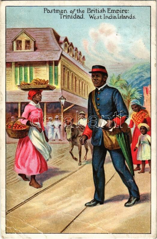 1906 Trinidad, West Indies; Postman of the British Empire, litho (EB) https://www.darabanth.com/hu/472-Gyorsarveres/472.0/Kepeslapok/Trinidad-es-Tobago~1500114/1906-Trinidad-West-Indies-Postman-of-the-British-Empire-litho-EB~II2139957