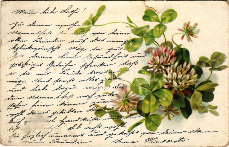 Leírás: 1899 (Vorläufer) Lóherés üdvözlőlap / Greetings with clovers. litho (szakadás / tear)