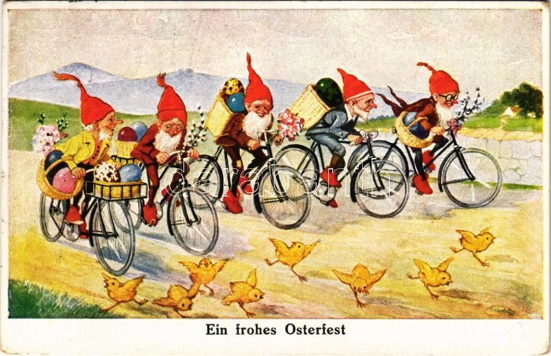 1930 Ein frohes Osterfest / Boldog húsvéti ünnepeket! Kerékpáros törpö... https://www.darabanth.com/hu/472-Gyorsarveres/472.0/Kepeslapok/Udvozlolapok-Unnepek~1500092/1930-Ein-frohes-Osterfest-Boldog-husveti-unnepeket-Kerekparos-torpok-Easter-greeting-cy~II3044187