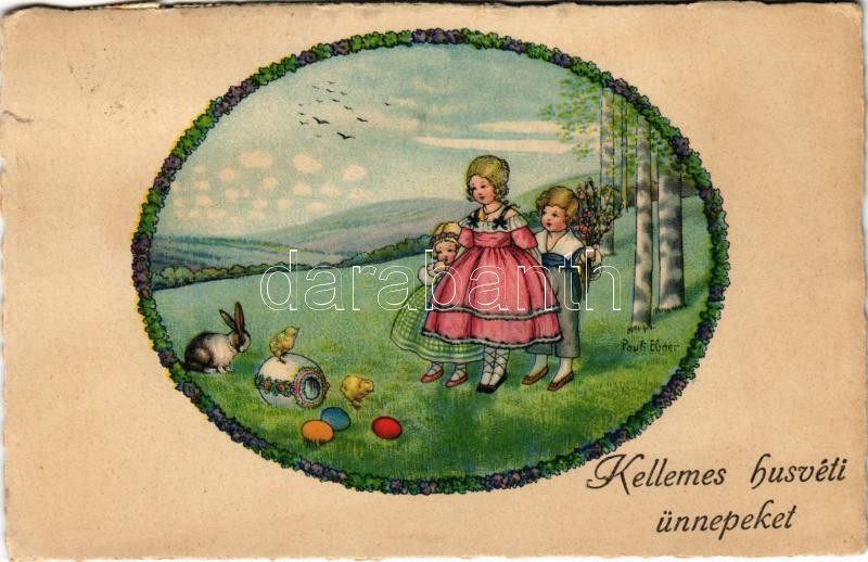 Leírás: 1932 Kellemes húsvéti üdvözlet / Easter greeting. Erika Nr. 2040. s: Pauli Ebner (szakadás / tear)