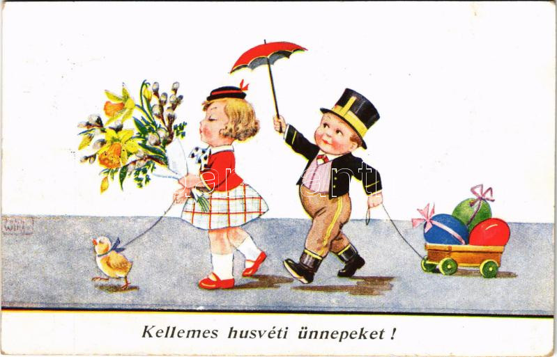 Leírás: 1941 Kellemes húsvéti ünnepeket! / Easter greeting art postcard. WSSB 5082/2. s: John Wills (fl)