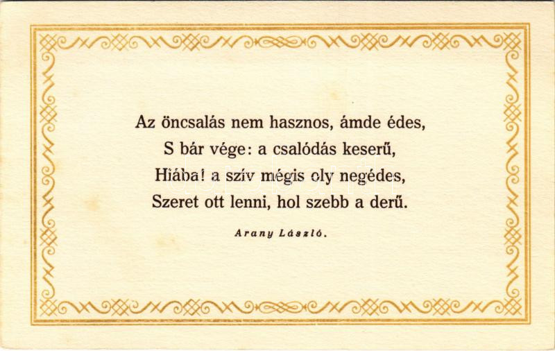 Az öncsalás nem hasznos, ámde édes... Romantikus levelezőlap Arany Lás... https://www.darabanth.com/hu/472-Gyorsarveres/472.0/Kepeslapok/Udvozlolapok-Unnepek~1500092/Az-oncsalas-nem-hasznos-amde-edes-Romantikus-levelezolap-Arany-Laszlo-versevel-Kner-Izi~II3199152