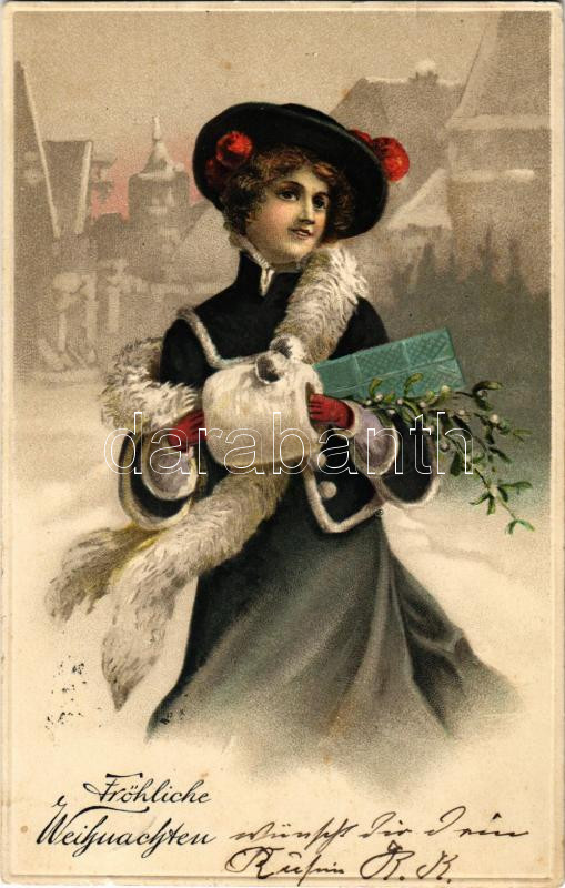 Fröhliche Weihnachten / Christmas greeting art postcard with lady. S.B... https://www.darabanth.com/hu/472-Gyorsarveres/472.0/Kepeslapok/Udvozlolapok-Unnepek~1500092/Frohliche-Weihnachten-Christmas-greeting-art-postcard-with-lady-SB-2132-Emb-litho-lyuk-pi~II3195210