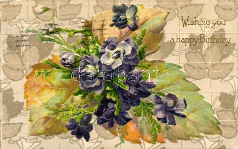 Leírás: 'Wishing you a Happy Birthday' / Greeting card, floral, litho, Emb. (EK)