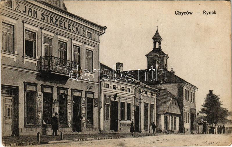Leírás: 1915 Khyriv, Chyriw, Chyrów (Lviv); Rynek, Jan Strzelecki, Restauracja / square, shop, restaurant (EK)