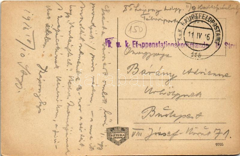 Leírás: 1916 Stryi, Stryj, Strij; Ul. Batorego / Batoregogasse / street view, automobile + "K.u.K. Etappenstationskommando in Stryj" (fl)