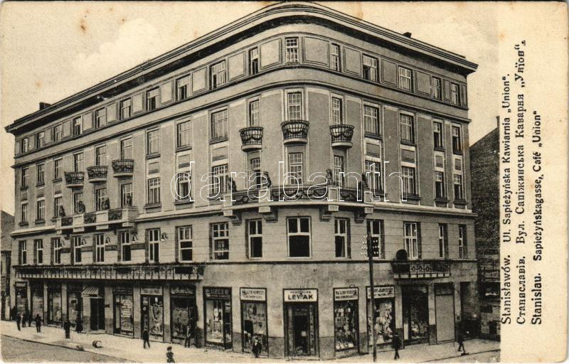 Ivano-Frankivsk, Stanislawów, Stanislau; Ul. Sapiezynska, Kawiarnia Union / Sapiezynskagasse, Café Union / street view, Café Union, shop of Jaeger (fl)