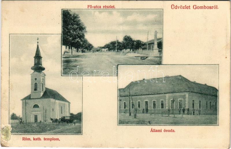 1907 Gombos, Bogojeva; Fő utca, Római katolikus templom, Állami óvoda.... https://www.darabanth.com/hu/472-Gyorsarveres/472.0/Kepeslapok/Vajdasag~1500011/1907-Gombos-Bogojeva-Fo-utca-Romai-katolikus-templom-Allami-ovoda-Weisz-Lazar-kiadasa-~II3199597