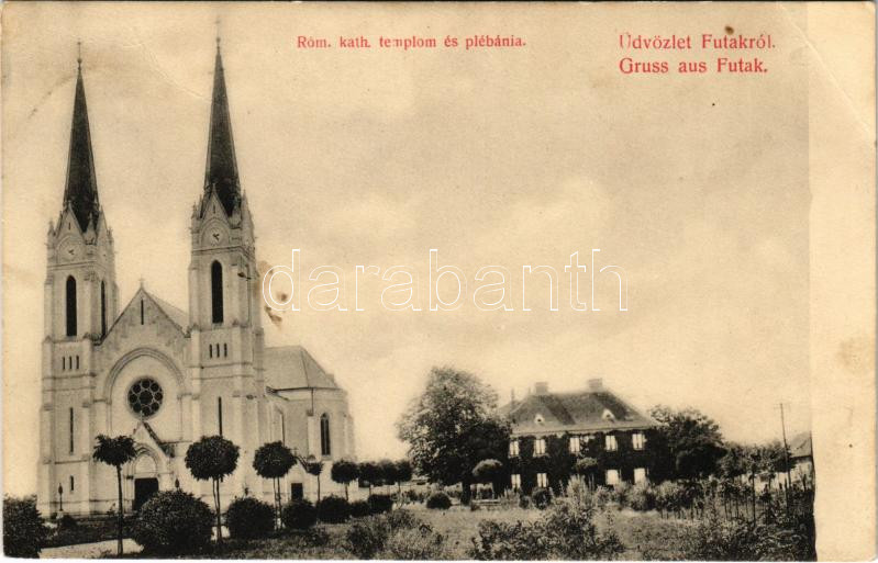 Leírás: Futak, Futtak, Futog; Római katolikus templom és plébánia / church and rectory (Rb)