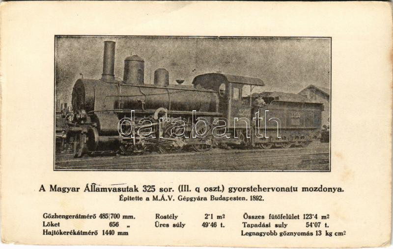 Magyar Királyi Államvasutak 325. sor. (IIIq. oszt.) gyorstehervonatú mozdonya. A Gőzmozdony kiadása / Hungarian State Railways locomotive (vágott / cut)