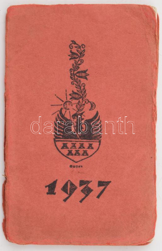 1937 Szegedi Kis Kalendárium. Szeged, 1937, Szegedi Fiatalok Művészeti Kollégiuma, 16 sztl. lev. Buday György 12 szöveg közti fametszetével. A népdalokat Delly Szabó Géza gyűjtötte az erdélyi Kalotaszeg vidékén. Kiadói papírkötés, sérült gerinccel és kötéssel, 11x7 cm.