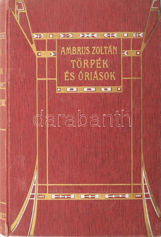 Leírás: Ambrus Zoltán: Törpék és óriások. Bp., 1907, Révai és Salamon. Kiadói szecessziós egészvászon kötés, gerinc sérült, címlap hiányzik, kopottas állapotban.