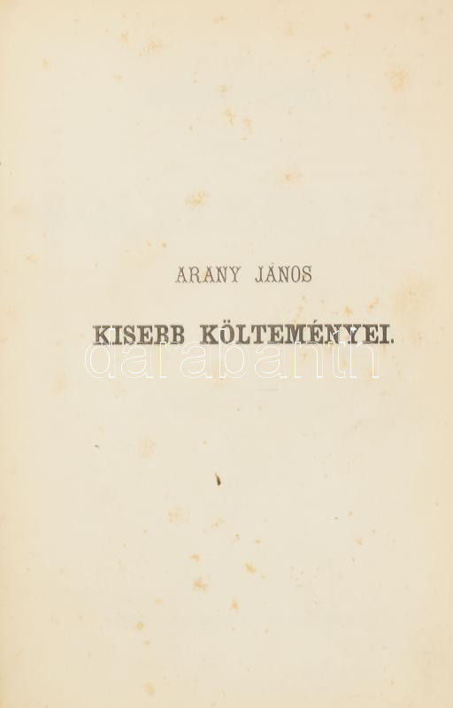 Arany János kisebb költeményei. I. köt. Pest, 1856, Heckenast Gusztáv. 240p. Kiadói, aranyozott félvászon kötésben, gerincen kis sérüléssel. Első kiadás!