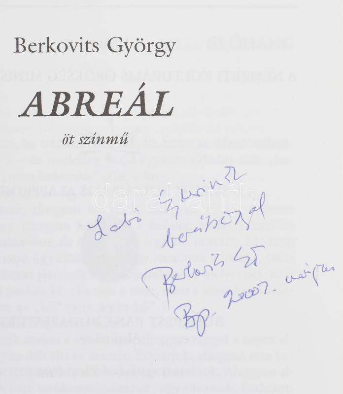 DEDIKÁLT! Bp.,2002., Ister. Kia... https://www.darabanth.com/hu/472-Gyorsarveres/472.0/Konyvek/Konyvek-Egyeb-ritkasagok~500036/Berkovits-Gyorgy-Abreal-Ot-szinmu--DEDIKALT-Bp-2002-Ister-Kiadoi-papirkotes~II3201324