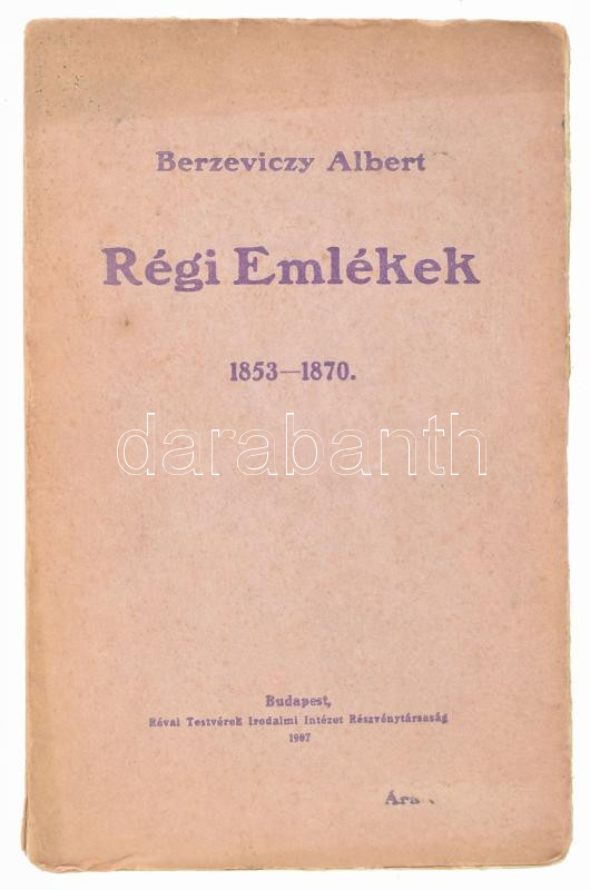 ... https://www.darabanth.com/hu/472-Gyorsarveres/472.0/Konyvek/Konyvek-Egyeb-ritkasagok~500036/Berzeviczy-Albert-Regi-emlekek-1853-1870-Bp-1907-Revai-314plus1-p-Kiadoi-papirkotes-sza~II3195106