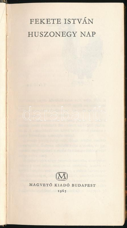 Fekete István: Huszonegy nap. Bp., 1965, Magvető. Első kiadás. Würtz Ádám rajzaival. Kiadói kartonált papírkötés, kissé kopott borítóval, jó állapotban.