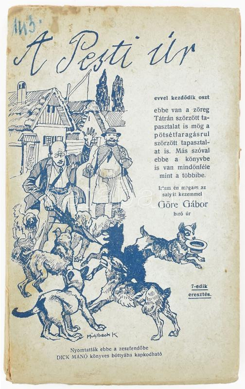 (Gárdonyi Géza) Göre Gábor: A pesti úr. Bp.,1925, Dick Manó,(Globus-ny.) Hetedik kiadás. Mühlbeck Károly illusztrációval. Kiadói papÃrkötés, foltos borÃtóval. Számozott, 2503. példány.