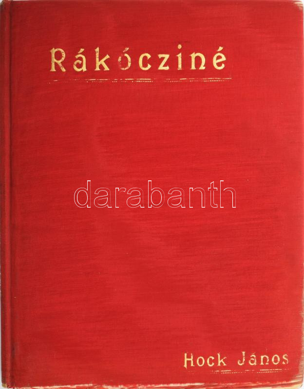 Leírás: Hock János: Rákócziné. Történeti elbeszélés. Bp., 1907, Athenaeum. Fekete-fehér illusztrációkkal. Kiadói aranyozott egészvászon-kötés, kopott borítóval, sérült vászonnal.