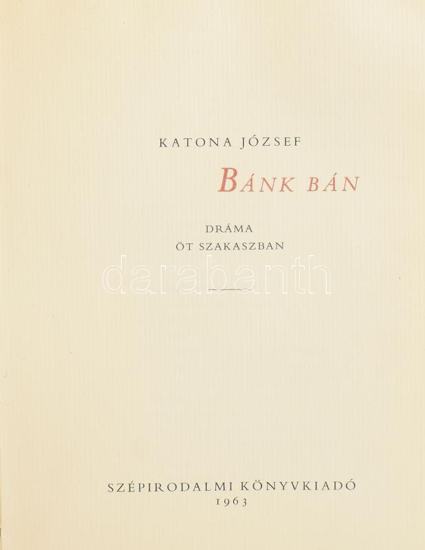 Katona József: Bánk bán. Dráma öt szakaszban. Borsos Miklós illusztrác... https://www.darabanth.com/hu/472-Gyorsarveres/472.0/Konyvek/Konyvek-Egyeb-ritkasagok~500036/Katona-Jozsef-Bank-ban-Drama-ot-szakaszban-Borsos-Miklos-illusztracioival-Bp-1963-Sz~II3177134