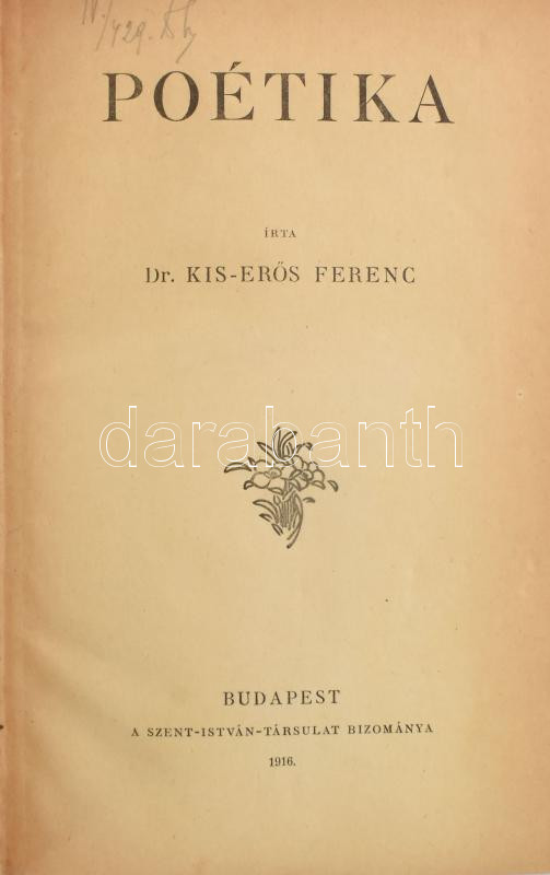 Kis-Erős Ferenc: Poétika. Hozzákötve: Verstan. Bp., 1916, Szent-István... https://www.darabanth.com/hu/472-Gyorsarveres/472.0/Konyvek/Konyvek-Egyeb-ritkasagok~500036/Kis-Eros-Ferenc-Poetika-Hozzakotve-Verstan-Bp-1916-Szent-Istvan-Tarsulat-134plus79plus1-p-C3~II3181158