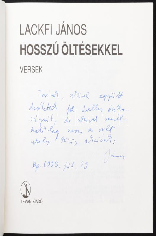Lackfi János: Hosszú öltésekkel. A szerző által DEDIKÁLT példány. Béké... https://www.darabanth.com/hu/472-Gyorsarveres/472.0/Konyvek/Konyvek-Egyeb-ritkasagok~500036/Lackfi-Janos-Hosszu-oltesekkel-A-szerzo-altal-DEDIKALT-peldany-Bekescsaba-1995-Teva~II3199686