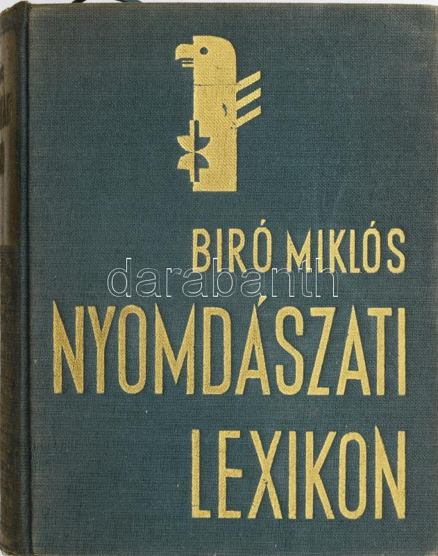 Leírás: Nyomdászati lexikon. Szerk.: Biró Miklós, Kertész Árpád, Novák László. Bp., 1936, Biró Miklós kiadása (Hungária-ny.), 546 p. Első kiadás. Kiadói aranyozott egészvászon-kötés, kopott borítóval és gerinccel.