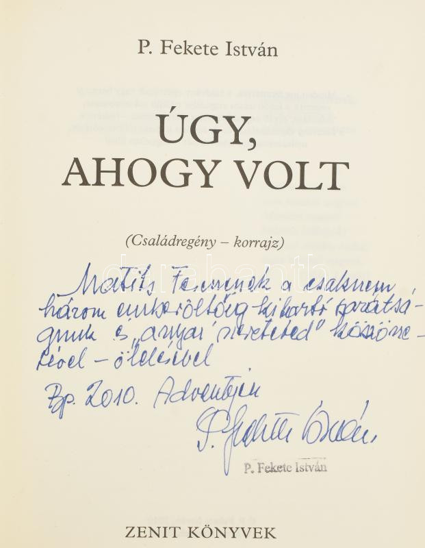 P. Fekete István: Úgy, ahogy volt. (Családregény-korrajz). P. Fekete István (1925-2020) író, Fekete István írói hagyatékának gondozója által DEDIKÁLT! Bp., 2010, Móra-Zenit. 714 p. Kiadói kartonált papírkötés, címlapon P. Fekete István névbélyegzőjével.
