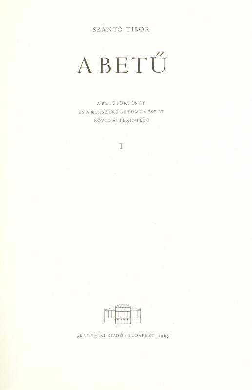 Szántó Tibor: A betű. A betűtörténet és a korszerű betűművészet rövid áttekintése. I-II. köt. Bp., 1965, Akadémiai Kiadó. Első kiadás. Kiadói egészvászon-kötés, néhány kissé foltos lappal. Megjelent 2200 példányban.