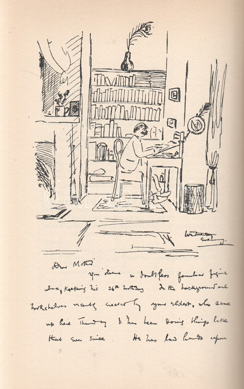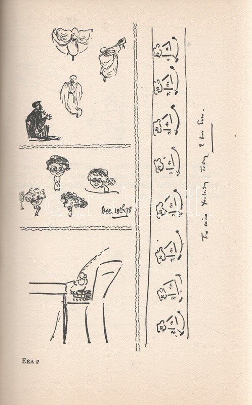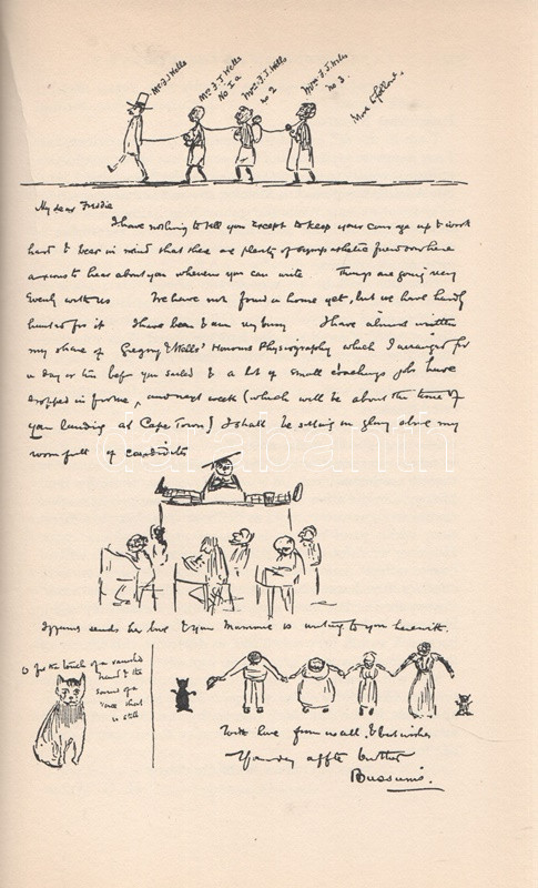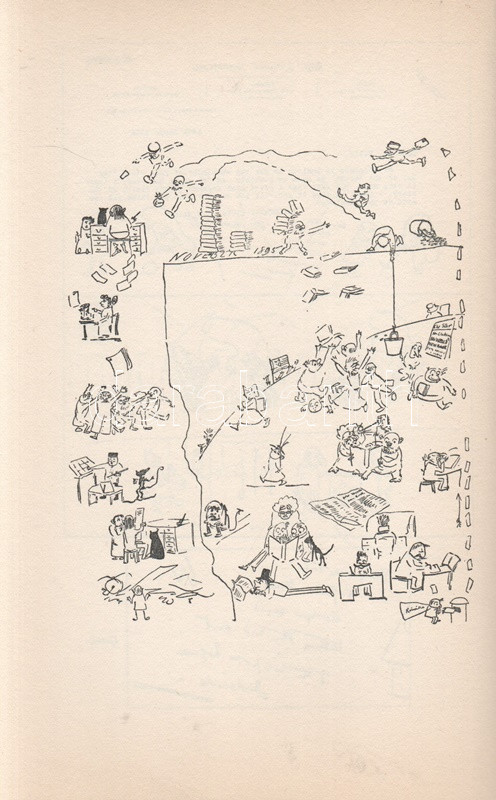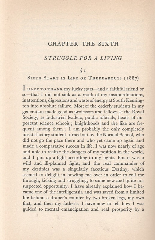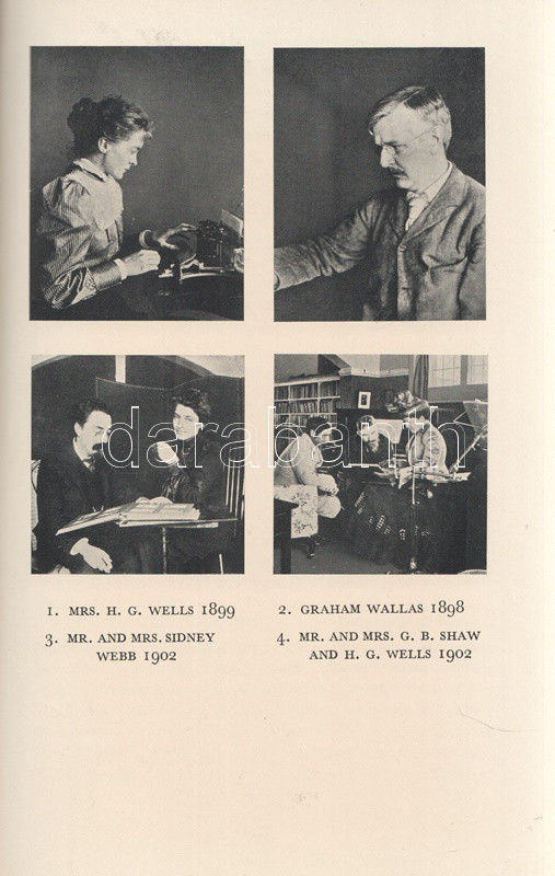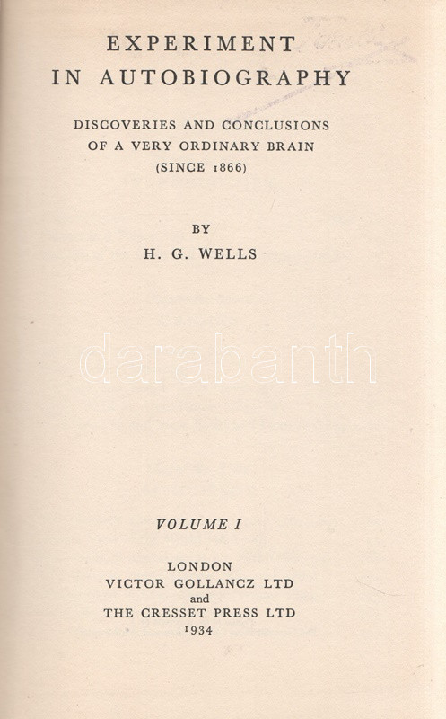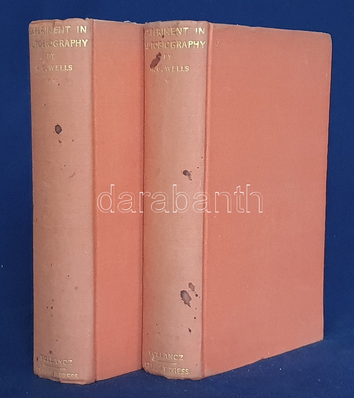 H. G. Wells (1866-1946) angol író, szociális gondolkodó, a modern science-fiction egyik atyjának önéletírása. A társadalomrajzba oltott önéletírás szövegét oldalszámozáson belül számos levél-hasonmás és humoros szerzői grafika kíséri. A népszerű író munkája 1935-ben jelent meg magyar fordításban. Az első kötet első előzékén kereskedői könyvjegy, a második kötet címoldalán régi tulajdonosi bélyegzés.