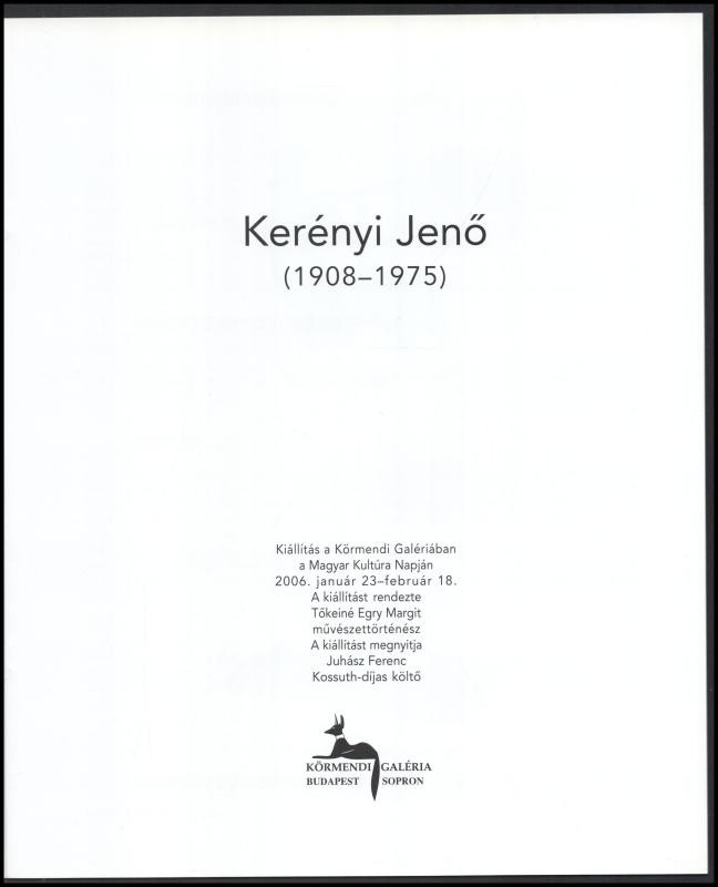 Leírás: Kerényi Jenő (1908-1975.) Szerk.: Csák Ferenc. Balla Demeter, Gink Károly, Zima György fotóival. Bp.-Sorpon, 2006, Körmendi Galéria. Kiadói papírkötés.