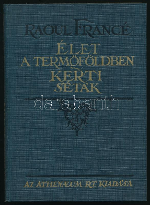 Leírás: Francé, Raoul Heinrich: Élet a termőföldben. / Kerti séták. Bp., [1927], Athenaeum, 150+(2) p. Fekete-fehér képekkel illusztrálva. Kiadói aranyozott egészvászon-kötés, jó állapotban.