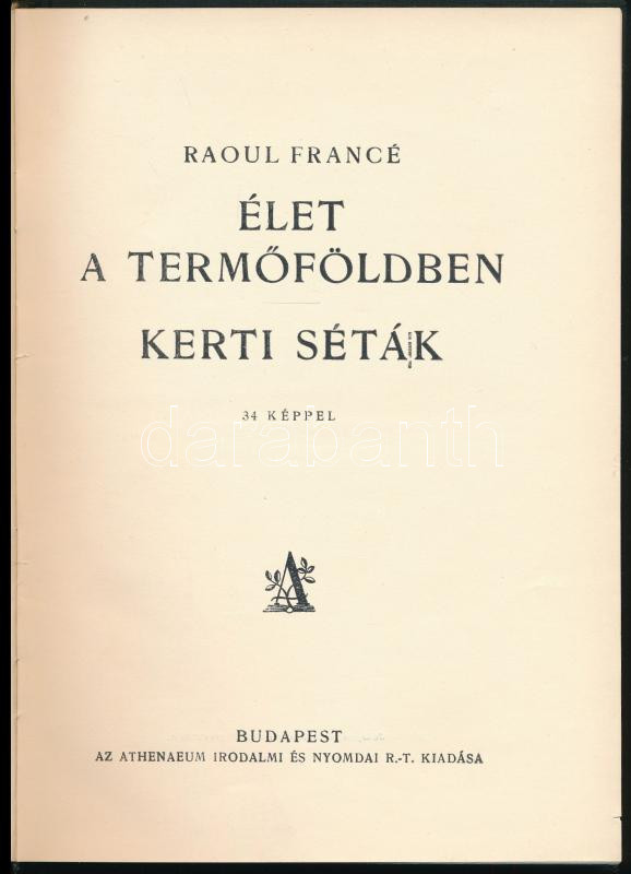 Francé, Raoul Heinrich: Élet a termőföldben. / Kerti séták. Bp., [1927... https://www.darabanth.com/hu/472-Gyorsarveres/472.0/Konyvek/Konyvek-Konyha-es-kert~500023/France-Raoul-Heinrich-Elet-a-termofoldben-Kerti-setak-Bp-1927-Athenaeum-150plus2-p~II3200819