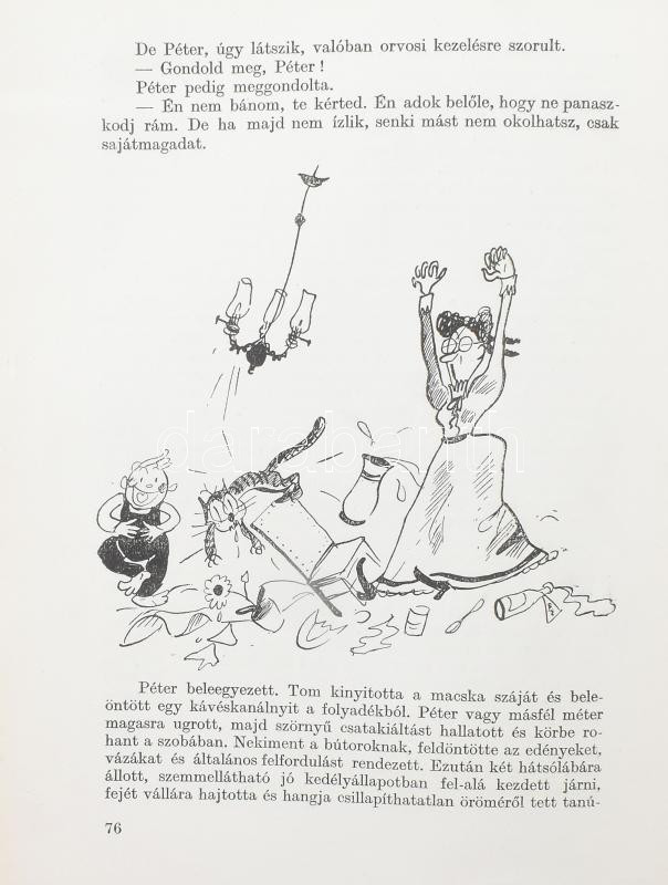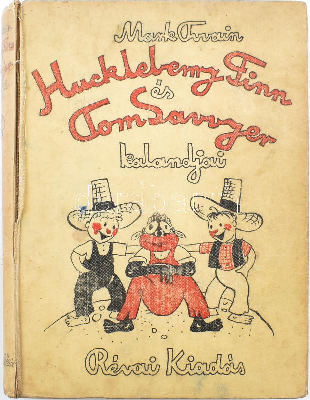 Mark Twain: Huckleberry Finn és Tom Sawyer kalandjai. Ford.: Koroknay István. Enyvvári Herbert rajzaival. Bp., [1936], Révai, 450 p. Első magyar kiadás. Kiadói illusztrált egészvászon-kötés, kissé viseltes, sérült borítóval, helyenként kissé foltos lapszélekkel.
