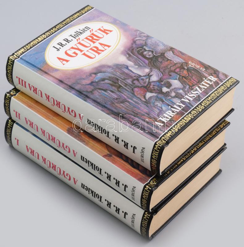 Tolkien, J. R. R.: A Gyűrűk Ura. I-III. kötet: A gyűrű szövetsége, A két torony, A király visszatér. Ford.: Göncz Árpád, Réz Ádám, Tandori Dezső. Bp., 2002, Európa, 540+4 p.;+438+4 p.; 533+5 p. Kiadói kartonált papírkötés, jó állapotban.
