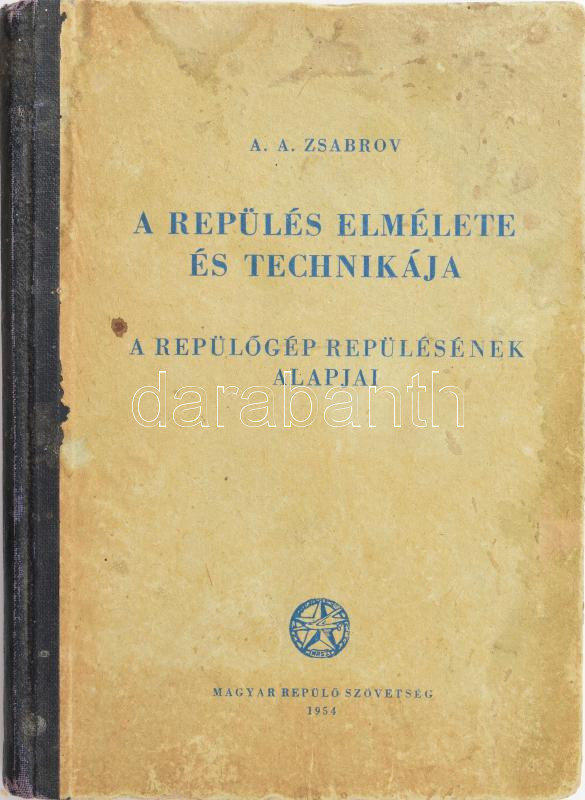 Zsabrov: A repülés elmélete és technikája I. A repülőgép repülésének alapjai. Bp., 1954, Magyar Repülő Szövetség. Szövegközti illusztrációkkal. Kiadói kopott, foltos félvászon-kötés.