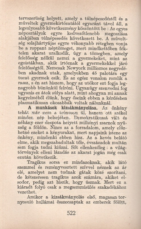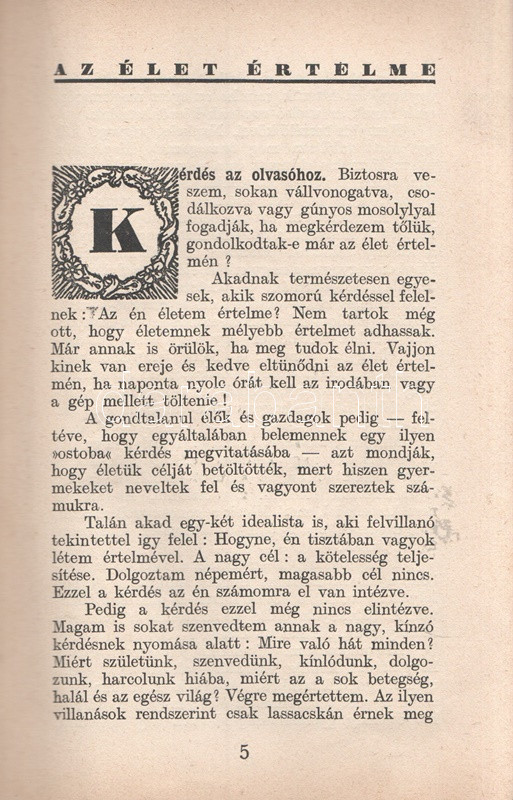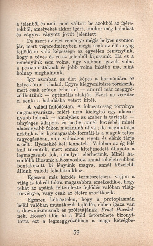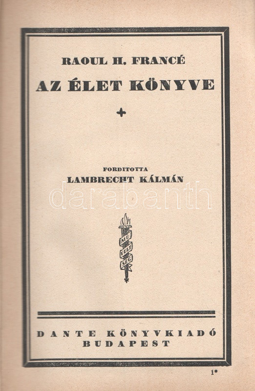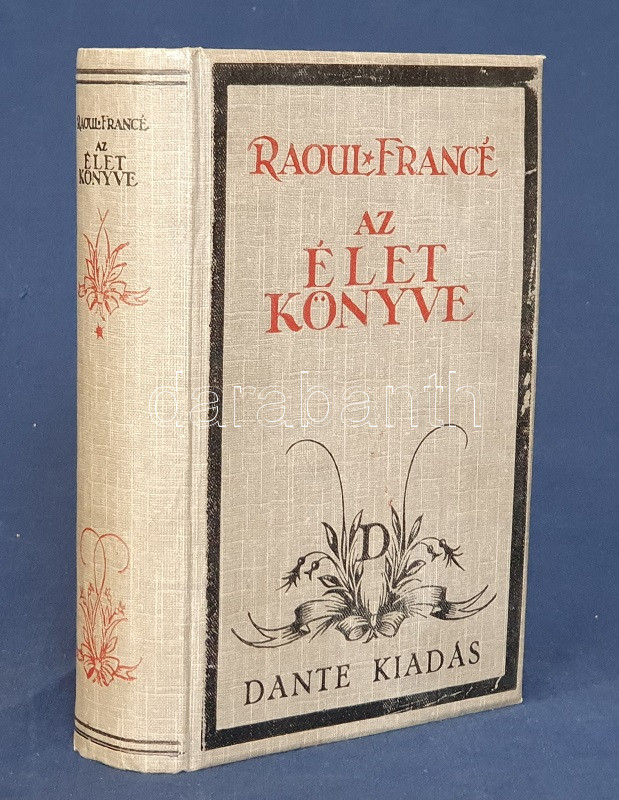 Francé, Raoul H[einrich]: Az élet könyve. Fordította Lambrecht Kálmán. Budapest, [1926]. Dante Könyvkiadó (Wodianer F. és Fiai Rt. ny.) 586 + [2] p. Első kiadás. Raoul Heinrich Francé (1874-1943) osztrák botanikus, természetfilozófus. A budapesti műegyetemen tanult, Entz Géza mellett dolgozott, 1892-től a Magyaróvári Gazdasági Akadémián növénykórtannal foglalkozott, 1902-től Münchenben élt, megalapította és vezette a Német Mikrobiológiai Társaságot. Nagy hírnevet elsősorban olvasmányos stílusban megírt természettudományi ismeretterjesztő munkáival szerzett. Apró fragmentumokból álló, indázó gondolatmenetű természetrajzi ismeretterjesztő munkáját az első világháború utáni inflációs évek alatt írta. Idealista, vitalista állásponton nyugvó munkájában a növényrendszertani gondolatoktól hamar eljut az elgépiesedettnek tételezett civilizáció kritikájához, az éghajlati övektől a birodalmi terjeszkedés elítéléséig; meglátása szerint a materializmus elvét a valódi tudományosság csupán kiindulópontnak tartja, az anyagelvűség, a profitközpontúság helyett a kézműves kultúra, a természetes határok és a hagyományok tiszteletben tartása biztosíthatja az emberiség fennmaradását. Oldalszámozáson belül számos szövegközti ábrával illusztrálva. (A Műveltség könyvtára.) Illusztrált kiadói vászonkötésben. Jó példány.