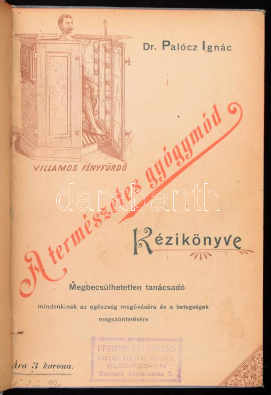 Palócz Ignác: A természetes gyógymód kézikönyve. Bp., 1898, Budapest Hírlap, 232 p. Korabeli egészvászon-kötés, bekötött elülső papírborítóval, festett lapélekkel, kopott borítóval. Jakabffy Lajos (1866-1940) mérnök, Szeged város műszaki tanácsosa, a település főmérnöke névbélyegzésével.