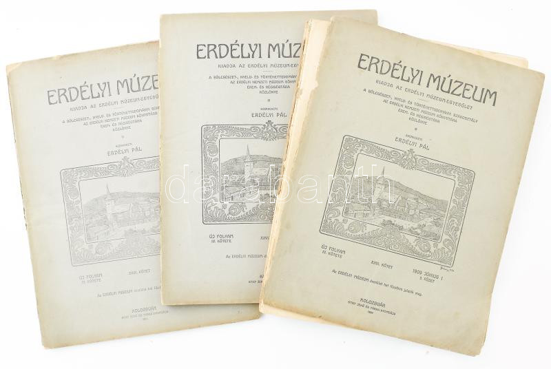 Az Erdélyi Múzeum - kiadja az Erdélyi Múzeum Egyesület Új folyam IV. kötet: 2., 3., 4. füzet. Szerk. Erdélyi Pál. Kolozsvár., 1909 Stief Jenő. Sérült papírkötésben