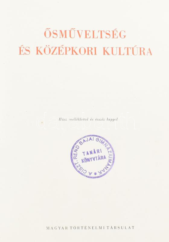 Domanovszky Sándor: Magyar Művelődéstörténet. I.: Ősműveltség és középkori kultúra. Bp., 1939 Magy. Történelmi Társ. [Révai]. 636p. Kiadói, aranyozott, bordázott gerincű kissé kopott félbőr kötésben