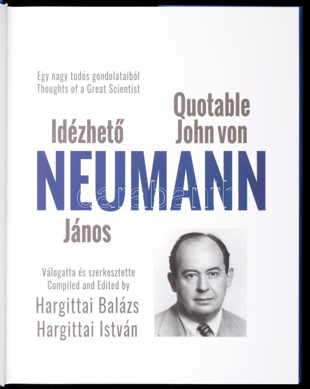 Hargittai Balázs (szerk.) Hargittai István (szerk.): Idézhető Neumann János. Bp., 2023, Neumann Társaság,kartonált papírkötés, papír védőborítóval, jó állapotban, magyar és angol nyelven.