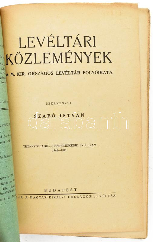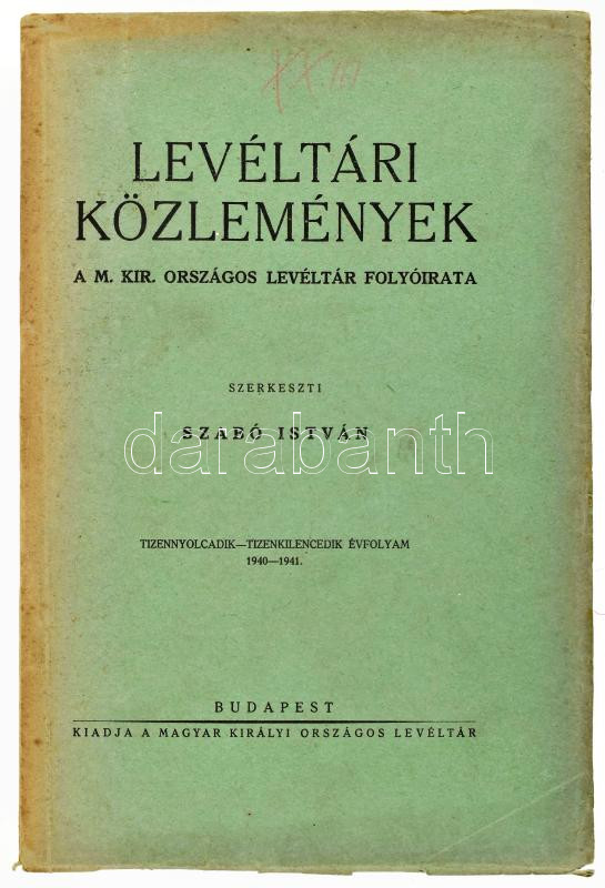 Levéltári Közlemények. A Magyar Országos Levéltár folyóirata.18-19. évf, 1940-41 . Szerk. Szabó István, Bp. , Magyar Országos Levéltár.. Kiadói papírborítóban, felvágatlan