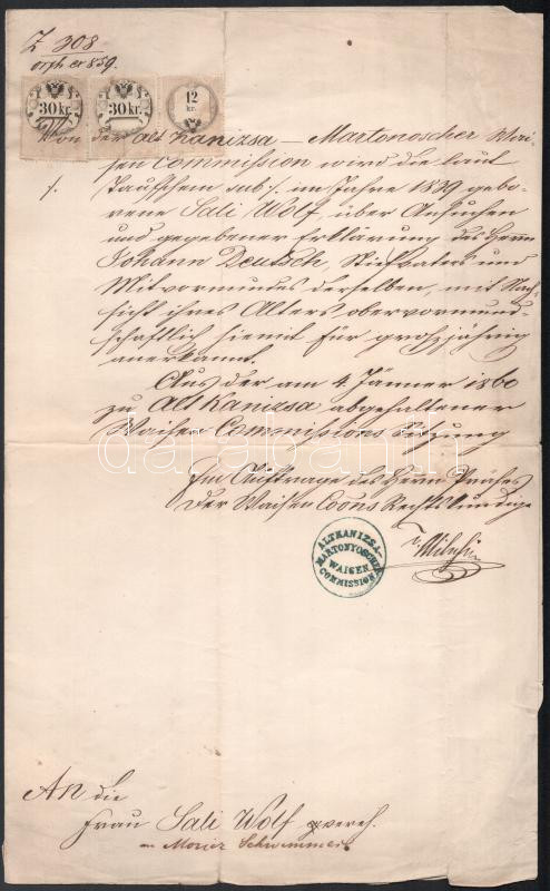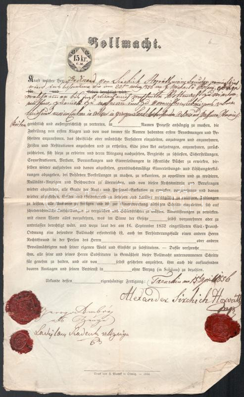 Leírás: 1850-1859 3 db okmánybélyeges okmány