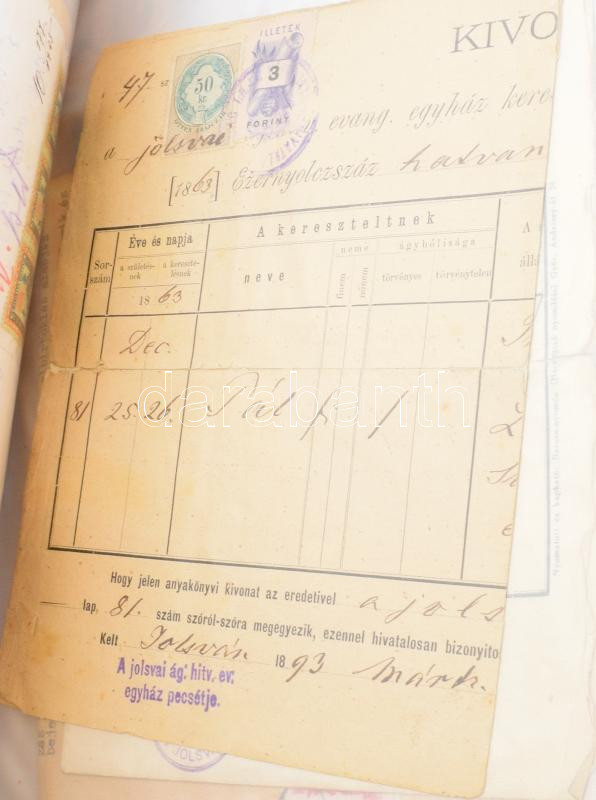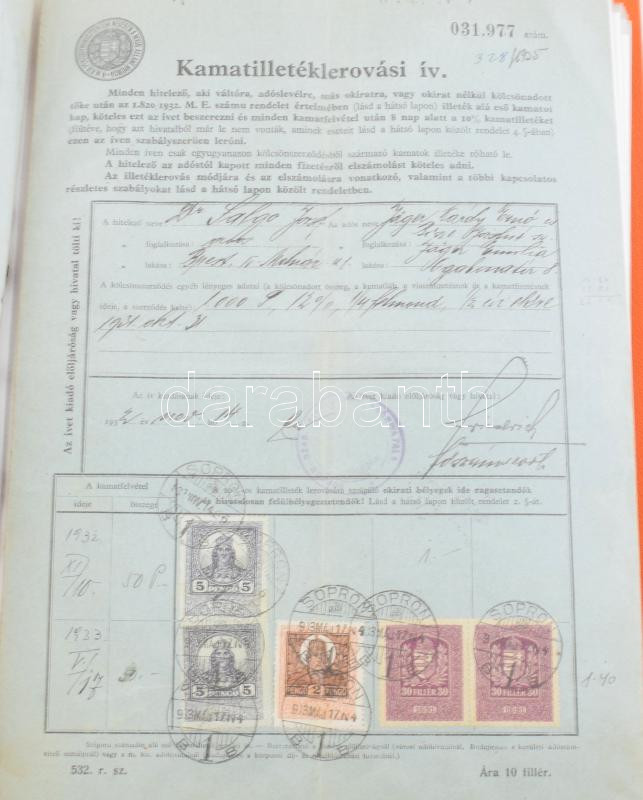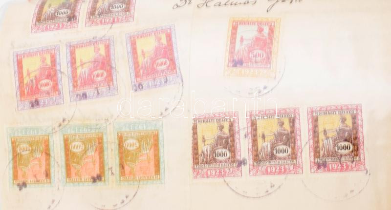 1850-1940 Kb 80 darabos okmánybélyeges okmány gyűjtemény Tokaj, és Miskolc környékéről, nagyrészt 1905-1930 közötti iratok, számla és egyéb illetékbélyegekkel. Közötte néhány II. világháború utáni. Gyűrűs berakóban