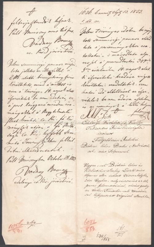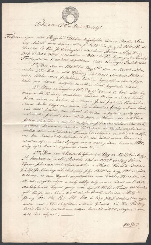 1851 Bódva, peres okmány 1G szignettával